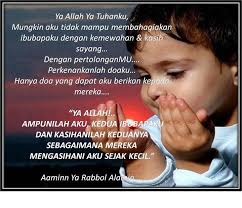 Sesungguhnya rindunya padamu bagaikan langit dan bumi yang saling erat dan rapat setiap ketika. Dimanakah anak itu? Suara itu perlahan-lahan senyap dan berlalu. Aku tersungkur dicelah dahan pokok yang kering dan hitam! Kedengaran satu suara yang berkumandang yakni takbir sebuah azan. Lantas aku tersedar dari lenaku yang baru saja aku lalui tadi. Luluh dan runtun jiwaku tatkala aku bangun dari mimpi itu tadi. Lelehan air mata tidak putus-putus berguguran dilereng pipi. Aku mengucap panjang dan menangis sesungguhnya.Aku menyesal dan kecewa dengan apa yang telah terjadi pada diriku ini. Solatku abaikan dan Allah bukan tempat untuk aku mengadu dan merayu tetapi teman-teman baikku. Aku dah jauh menyimpang dari agamaku. Dah bertahun aku tinggalkan puasa dan solat! Ya Allah! Ampunkan dosaku dan juga dosa kedua orang tuaku! Tempatkan mereka ditempat yang Kau redhai dan masukanlah mereka kedalam syurga pilihanMu. Sesungguhnya aku adalah hambaMu yang berdosa Ya Allah! Bergetar hati penulis mendengar cerita teman penulis ini. Sesekali air mata penulis juga menitis tanpa penulis minta dan sedari tatkala melihat kesungguhan DD yang terpancar kejujuran dimukanya.